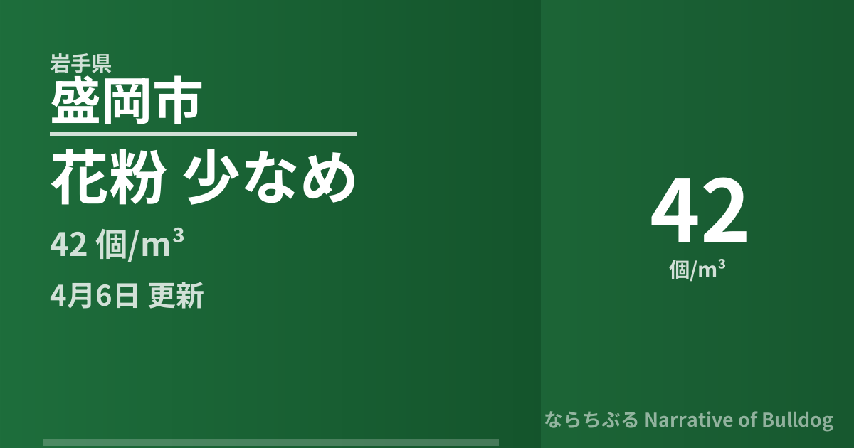 盛岡市の本日(4月6日)の花粉飛散量は「少ない」レベルです。