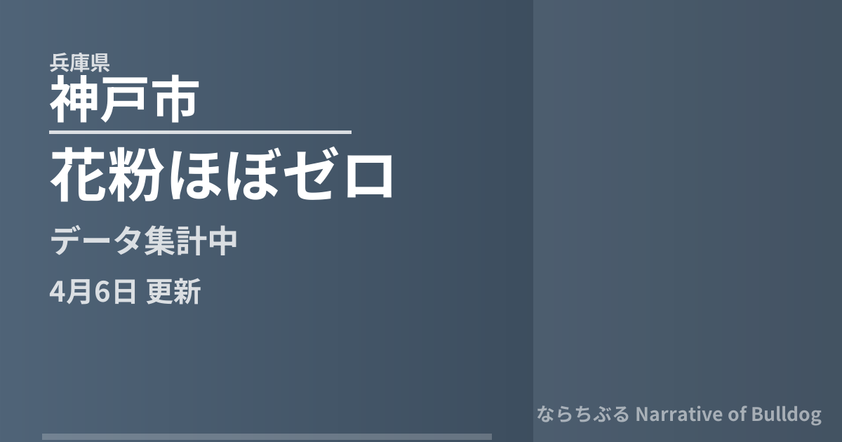 このページでは、兵庫県神戸市の花粉飛散情報をリアルタイムで提供しています。 データは観測地点の自動計測機器から1時間ごとに取得・更新されており、当日の累計飛散量と翌日予測を確認できます。
