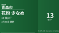 花粉の実測データは1時間ごと(6〜18時)に自動更新されます。 「今日の累計花粉量」は当日0時から現在までの積算値です。 翌日予測は前日実績・過去データ・気象情報をもとにアルゴリズムで算出しています。